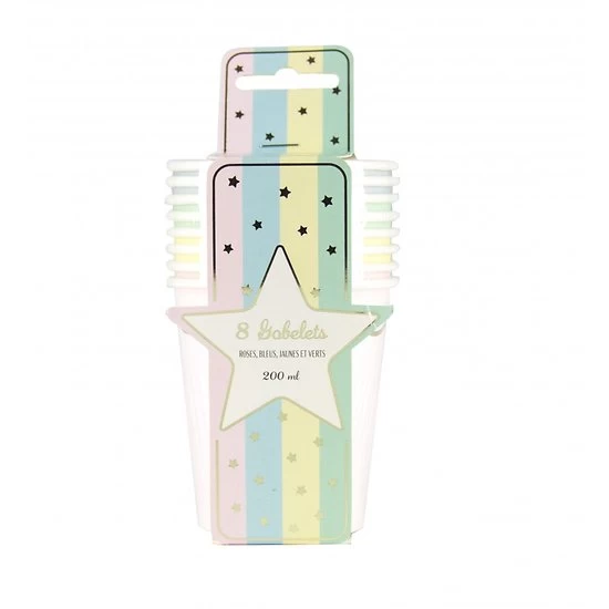 8 gobelets en carton Pastel assortis – 200 ml. Cette gamme de gobelets couleur pastel apporte fraicheur et good vibes à votre table de fêtes. Pique nique, baptème, anniversaire, apéro, etc. Toutes les excuses sont bonnes pour utiliser ces ravissants gobelets en papier. Pour une table de fête ultra mignonne !