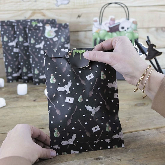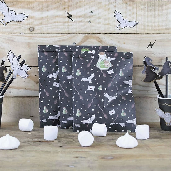 8 Pochettes en Papier imprimé style Harry Potter. Indispensable pour les anniversaires des petit(e)s sorcier(e)s en herbe, glissez y toutes les goodies et autres petits cadeaux et bonbons pour les invités. Ce lot de 8 Pochettes en Papier imprimé style Harry Potter est parfait pour égayer vos soirées d’anniversaire. Ces 8 Pochettes cadeaux en Papier imprimé style Harry Potter décorent votre anniversaire sur le thème Harry Potter avec une touche de magie.
