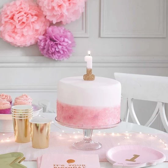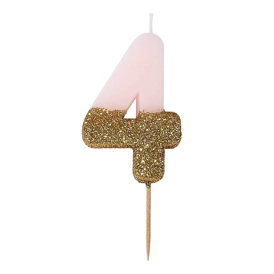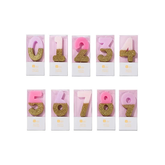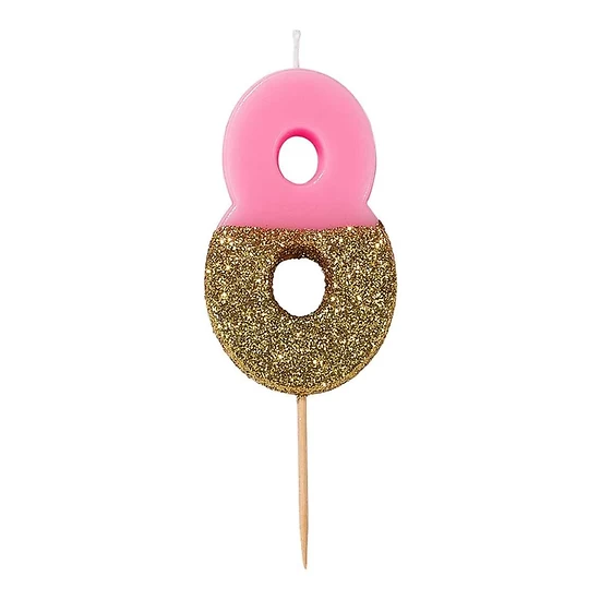 Bougie anniversaire chiffre rose et paillette. Une grande bougie de 11 cm au total (support inclus) avec de jolies paillettes.