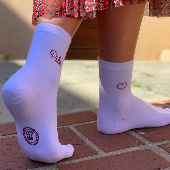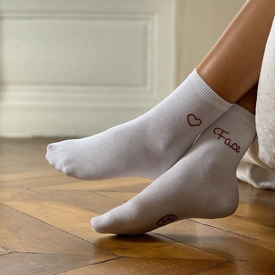 Chaussettes Femmes Pile ou Face – Les Attachantes – Taille 35/38. Adoptez ces socquettes blanches 100% made in France. Les chaussettes blanches, un indispensable que tout le monde a dans son armoire. Sur un coté est écrit « pile » et sur l’autre « face ». Enfilez vos paires et vous n’aurez plus le moral dans les chaussettes !