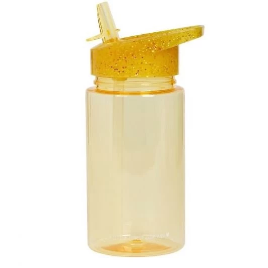 Gourde à paillettes doré, avec une paille intégrée. Une jolie gourde pour y transporter du liquide (jus, eau) en cas de grosse soif. La taille parfaite pour un cartable.