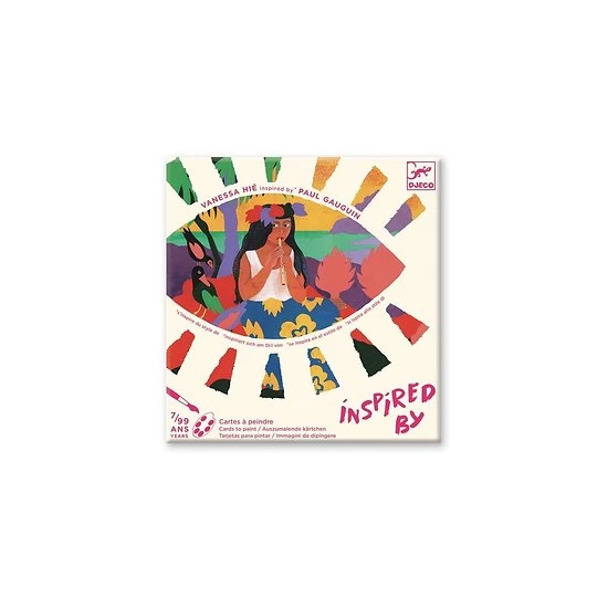 Jeu Créatif 7 à 99 ans – Cartes à peindre – Inspired by Polynésie – Paul Gauguin. Une excellente activité pour les enfants à partir de 7 ans. Découvrez le style de l’artiste Paul Gauguin à travers de belles cartes à peindre. Ajoutez de la couleurs à ces cartes inspirées de la Polynésie. Cette pochette contient 4 cartes de papier aquarelle illustrées de 20 cm, 4 palettes de peinture en carte épaisse, 1 pinceau et 1 livret explicatif. C’est une super activité pour les enfants et les adultes qui apprécient la peinture.