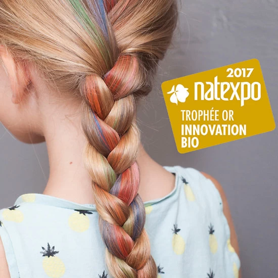 Application facile sur cheveux secs : prélever la couleur avec la brosse et appliquer sur les mèches à maquiller.