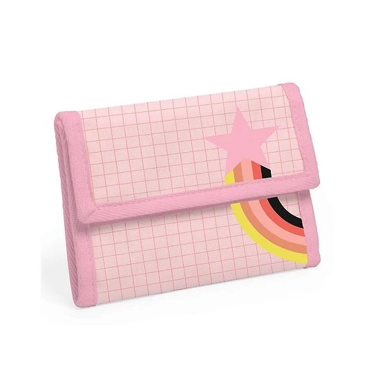 Portefeuille – Rainbow Pop. Ce joli porte-monnaie garde les affaires de votre enfant bien au sec. À l’intérieur, il y a une pochette fermée par un zip pour les pièces de monnaie, une pochette pour les billets et trois compartiments pour les cartes. Le plus ? Ce portefeuille pour enfant est en toile enduite, il est donc imperméable.
