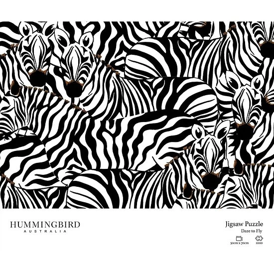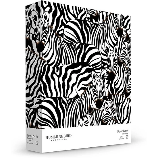 Puzzle 1000 pièces Hummingbird – Dare to Fly – Zèbres est design tout en noir et blanc. C’est l’occasion idéale pour exercer votre mémoire visuelle, seul ou à plusieurs. Chaque trait de la peinture est fait à la main. Ce puzzle 1000 pièces a été fabriqué avec 100% de matière recyclée, un petit clin d’oeil pour notre chère planète.