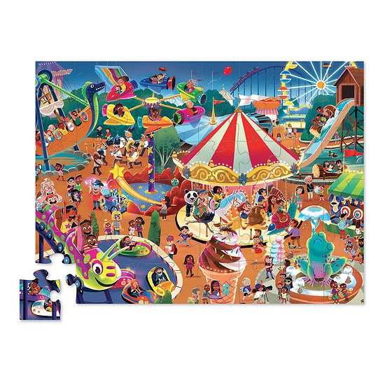 Puzzle 48 pièces – Une journée à la fete foraine – 4/6 ans. Un puzzle idéal pour vos petits loulous. Ce puzzle enfant est parfait pour l’aider à développer sa concentration. Une première fois avec maman et papa (ou pas) et ce puzzle devient son jeu préféré. Ce puzzle 48 pièces a été fabriqué avec 100% de matière recyclée, un petit clin d’oeil pour notre chère planète.
