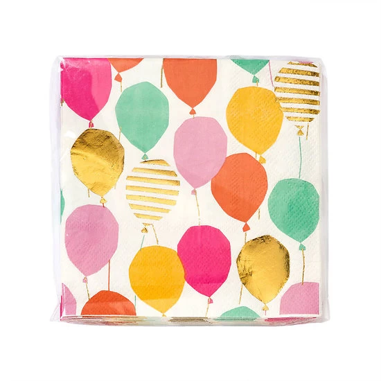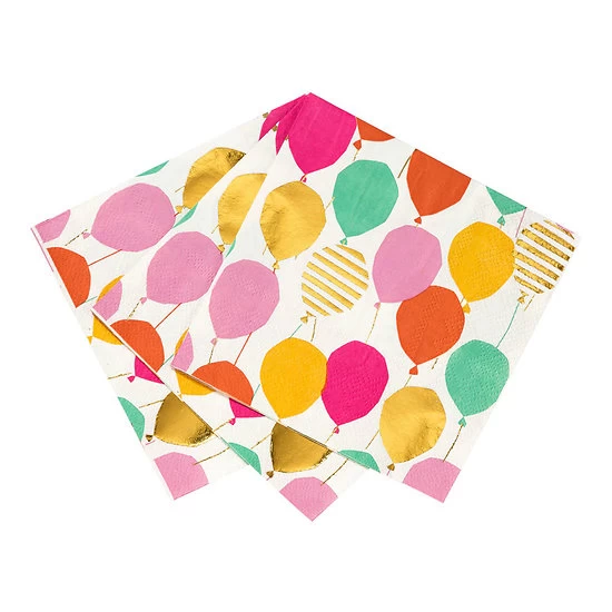 Serviette cocktail Ballons – Lot de 16. Pour un anniversaire plein de peps et de bonne humeur ! Ce lot de 16 serviettes de décoration de table de fête ou de cocktail apporte une touche colorée à votre table.
