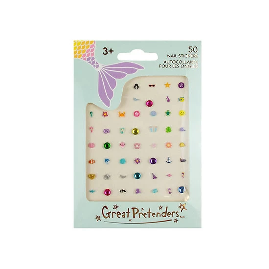 Stickers ongles pour enfants – Sirène. 50 autocollants de l’univers des sirènes à mettre sur ses ongles ! Ajoutez une touche de magie sous-marine en décorant les mains de votre enfant. Un large choix d’amusantes créatures de la mer et de strass ! Dauphins, coquillages, perles, avec tous ces stickers, votre petit est mignon jusqu’au bout des doigts !