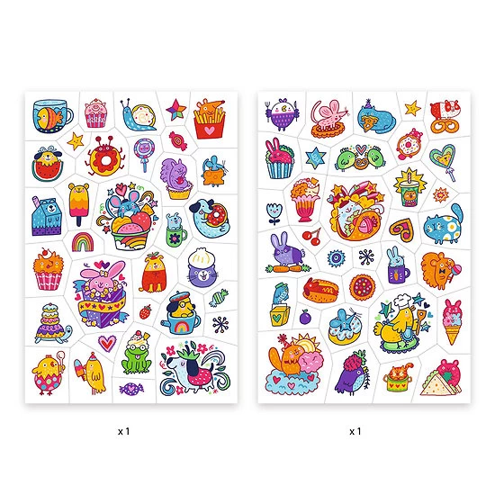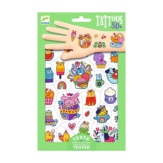 tatouages Mimi sweet de Djeco, des tatouages testés dermatologiquement. Plus de 50 tattoos originaux aux illustrations Kawai très colorées et gourmandes pour le plus grand plaisir des enfants à offrir en cadeau pour les filles et les garçons.